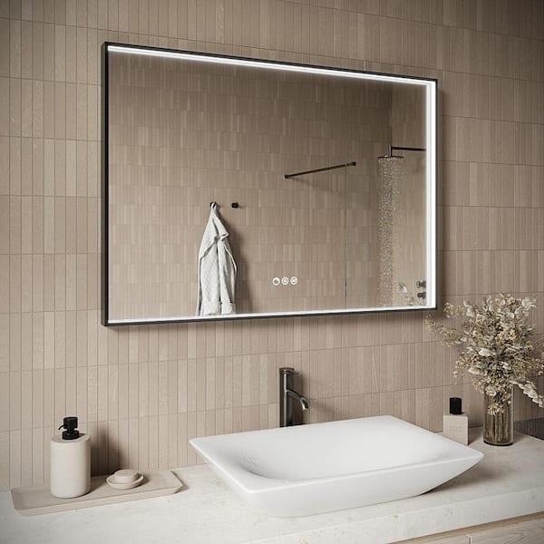 40 in. W x 28 in. H Rectangular Framed LED Light Anti-Fog Dimmable Color Temperature Change Wall Bathroom Vanity Mirror
