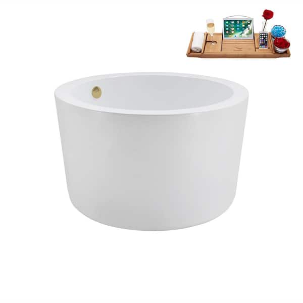 41 in. x 41 in. Acrylic Freestanding Soaking Bathtub in Glossy White with Brushed Brass Drain