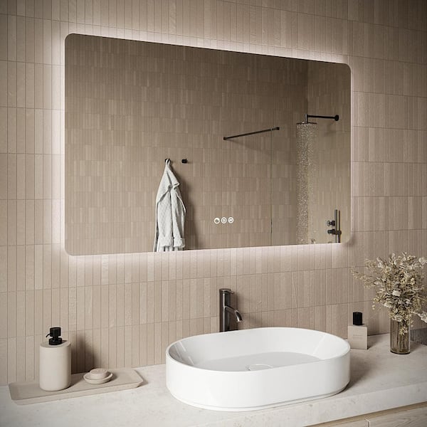 47 in. W x 28" H Rectangular Frameless LED Light Anti-Fog Dimmable Color Temperature Change Wall Bathroom Vanity Mirror