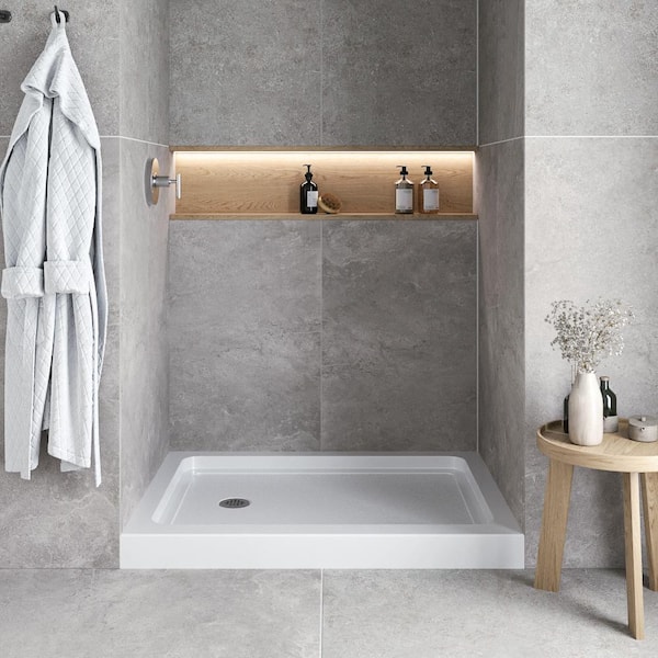 48 in. L x 36 in. W Alcove Acrylic Shower Pan Base in Glossy White with Left Drain, Drain Included