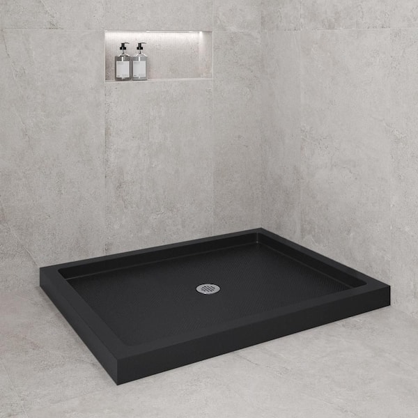48 in. L x 36 in. W Corner Acrylic Shower Pan Base in Glossy Black with Center Drain, Drain Included
