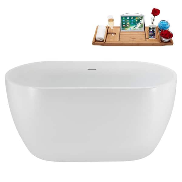 48 in. x 26 in. Acrylic Freestanding Soaking Bathtub in Glossy White with Brushed Nickel Drain, Bamboo Tray