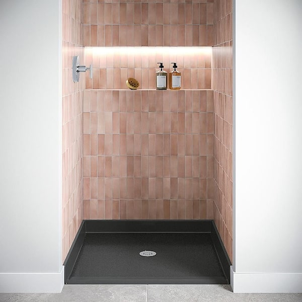 48 in. x 38 in. Alcove Acrylic ADA Shower Pan Base in Glossy Black with Center Drain, Drain Included