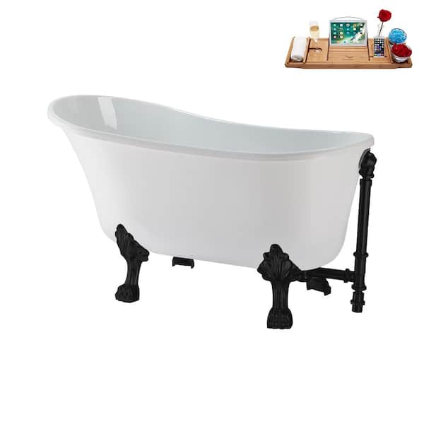 51 in. Acrylic Clawfoot Non-Whirlpool Bathtub in Glossy White with Matte Black Drain And Matte Black Clawfeet