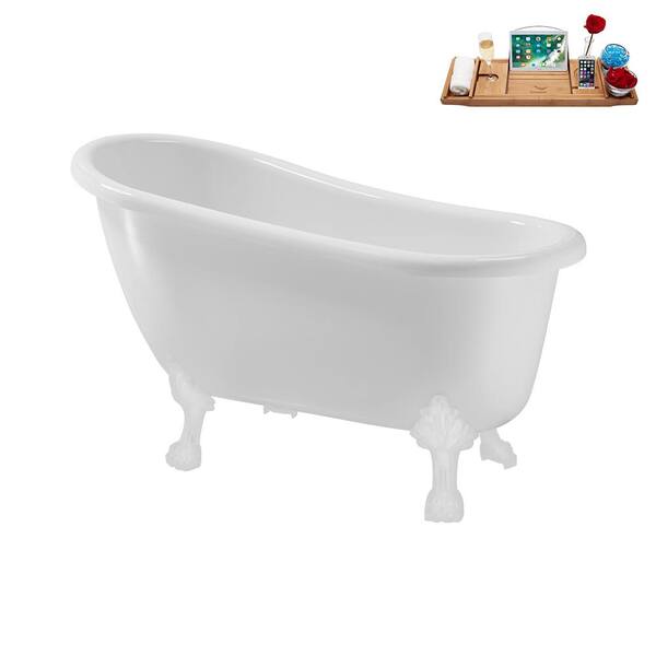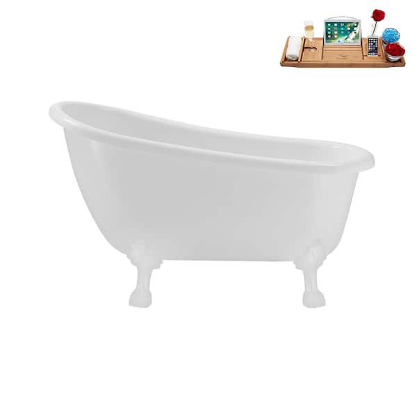 53 in. Acrylic Clawfoot Non-Whirlpool Bathtub in Glossy White with Brushed Nickel Drain And Glossy White Clawfeet