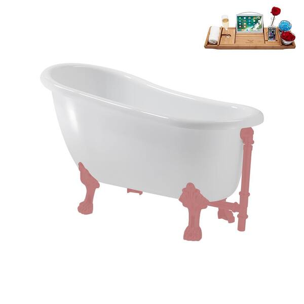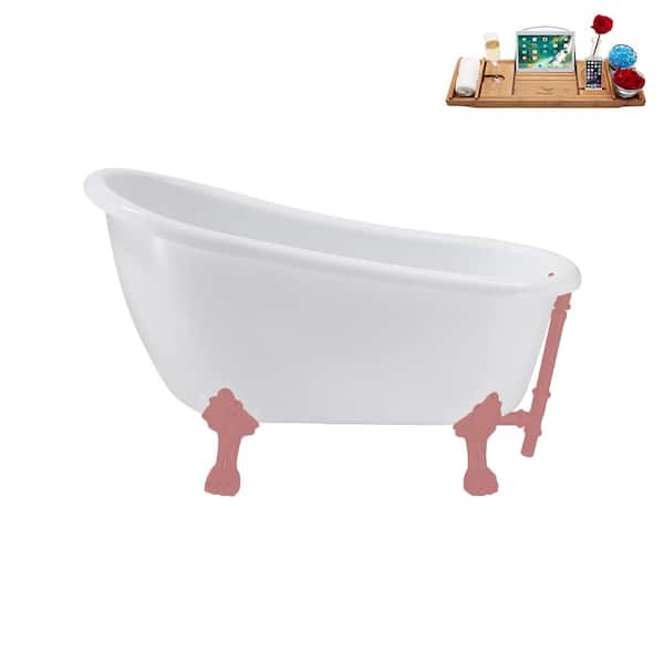 53 in. x 25.6 in. Acrylic Clawfoot Soaking Bathtub in Glossy White with Matte Pink Clawfeet and Matte Pink Drain