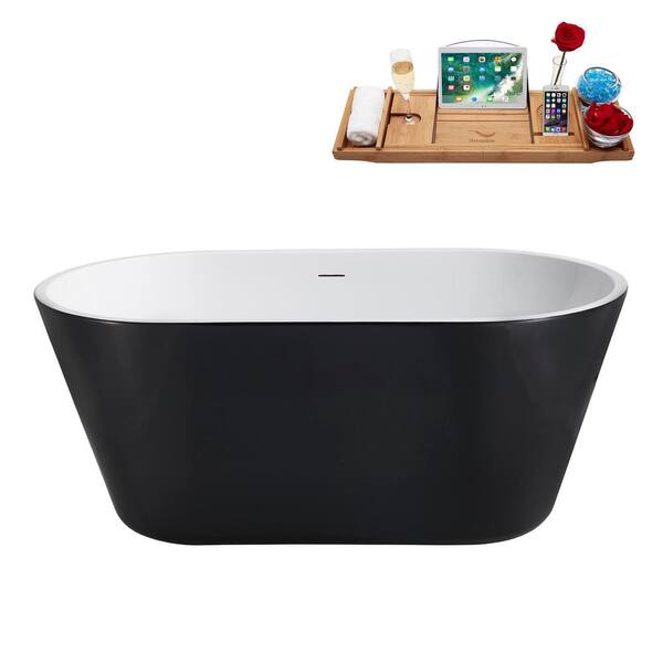 54 in. x 29 in. Acrylic Freestanding Soaking Bathtub in Glossy Black with Brushed Nickel Drain