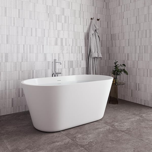 54 in. x 29 in. Acrylic Freestanding Soaking Bathtub in Glossy White with Glossy White Drain
