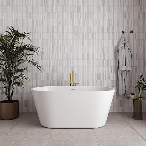 54 in. x 29 in. Acrylic Freestanding Soaking Bathtub in Glossy White with Polished Gold Drain