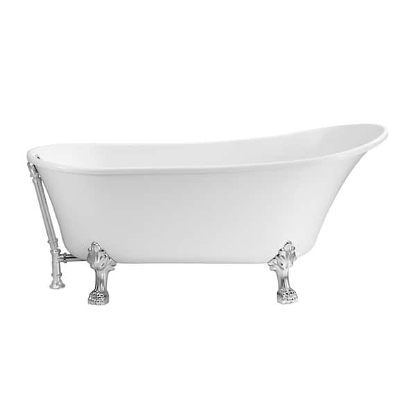 55 in. Acrylic Clawfoot Non-Whirlpool Bathtub in Glossy White With Polished Chrome Clawfeet And Polished Chrome Drain