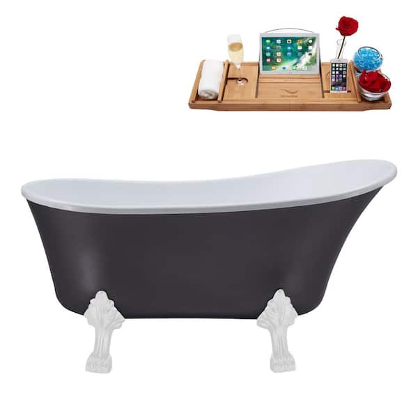 55 in. Acrylic Clawfoot Non-Whirlpool Bathtub in Matte Grey With Glossy White Clawfeet And Glossy White Drain