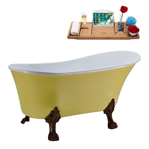 55 in. Acrylic Clawfoot Non-Whirlpool Bathtub in Matte Yellow, Matte Oil Rubbed Bronze Clawfeet,Brushed GunMetal Drain