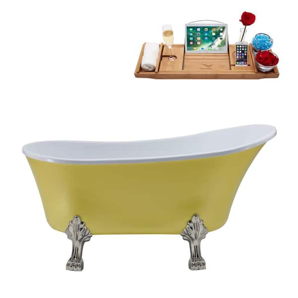 55 in. Acrylic Clawfoot Non-Whirlpool Bathtub in Matte Yellow With Brushed Nickel Clawfeet And Matte Black Drain