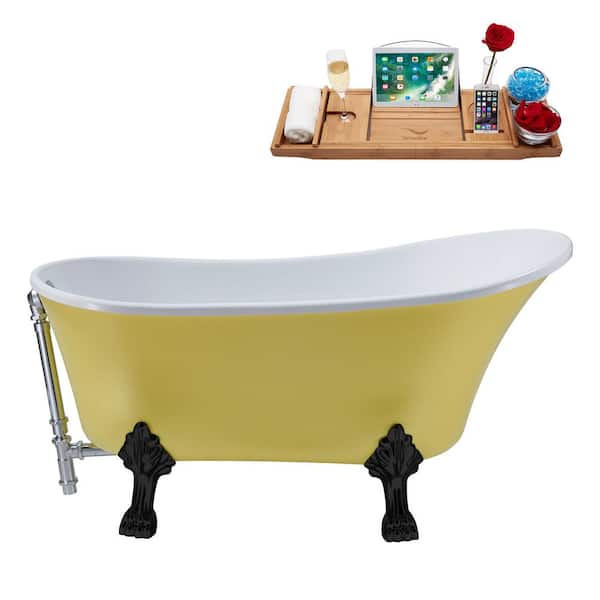 55 in. Acrylic Clawfoot Non-Whirlpool Bathtub in Matte Yellow With Matte Black Clawfeet And Polished Chrome Drain