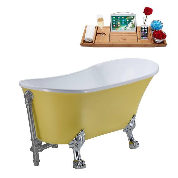 55 in. Acrylic Clawfoot Non-Whirlpool Bathtub in Matte Yellow With Polished Chrome Clawfeet And Brushed Gun Metal Drain
