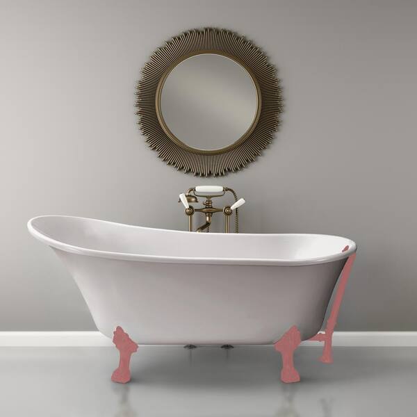 55 in. x 26.8 in. Acrylic Clawfoot Soaking Bathtub in Glossy White with Matte Pink Clawfeet and Matte Pink Drain