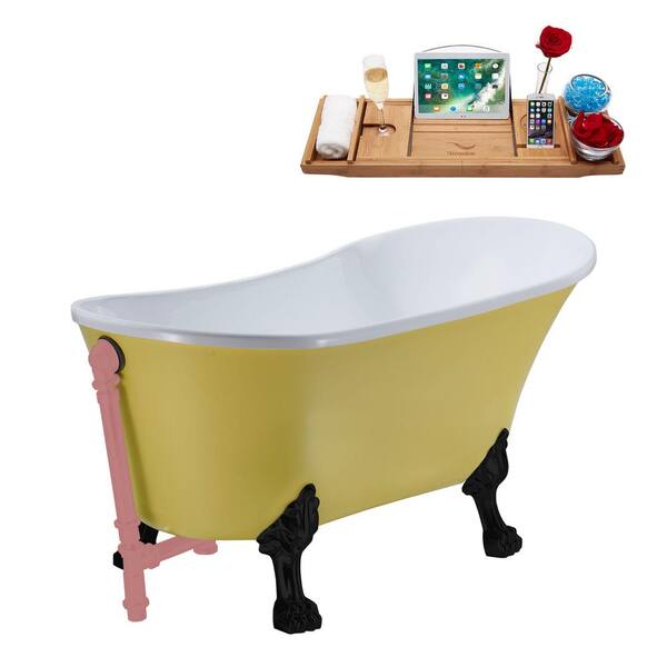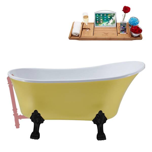 55 in. x 26.8 in. Acrylic Clawfoot Soaking Bathtub in Matte Yellow with Matte Black Clawfeet and Matte Pink Drain