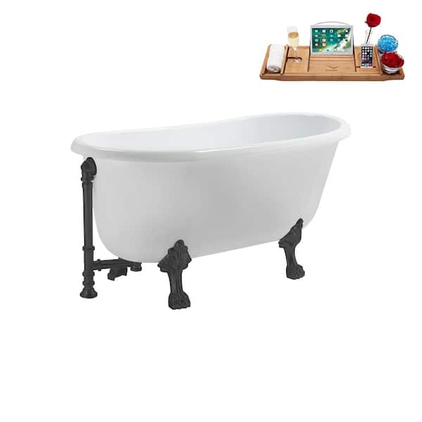 57 in. Acrylic Clawfoot Non-Whirlpool Bathtub in Glossy White with Brushed Gun Metal Drain, Brushed Gun Metal Clawfeet