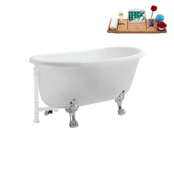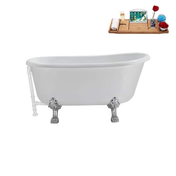 57 in. Acrylic Clawfoot Non-Whirlpool Bathtub in Glossy White with Glossy White Drain and Polished Chrome Clawfeet