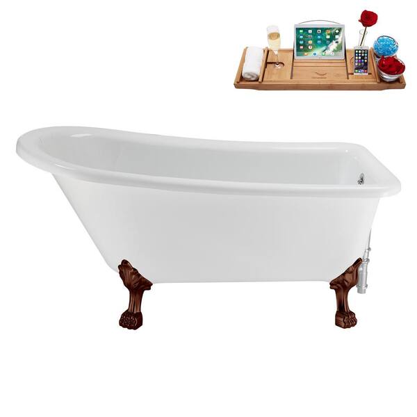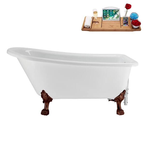 58 in. x 28 in. Acrylic Clawfoot Soaking Bathtub in Glossy White Polished Chrome Drain, Matte Oil Rubbed Bronze Clawfeet