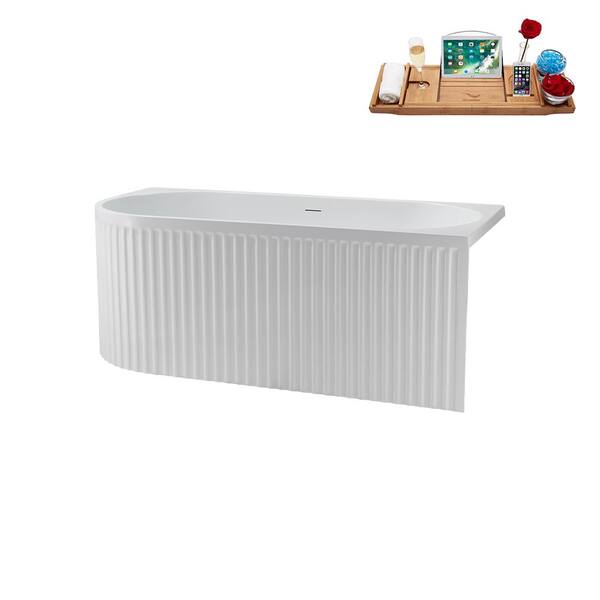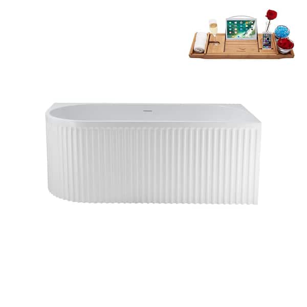 59 in. Acrylic Flatbottom Non-Whirlpool Bathtub in Glossy White with Brushed Nickel Drain and Tray