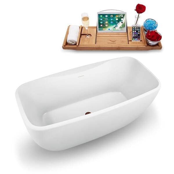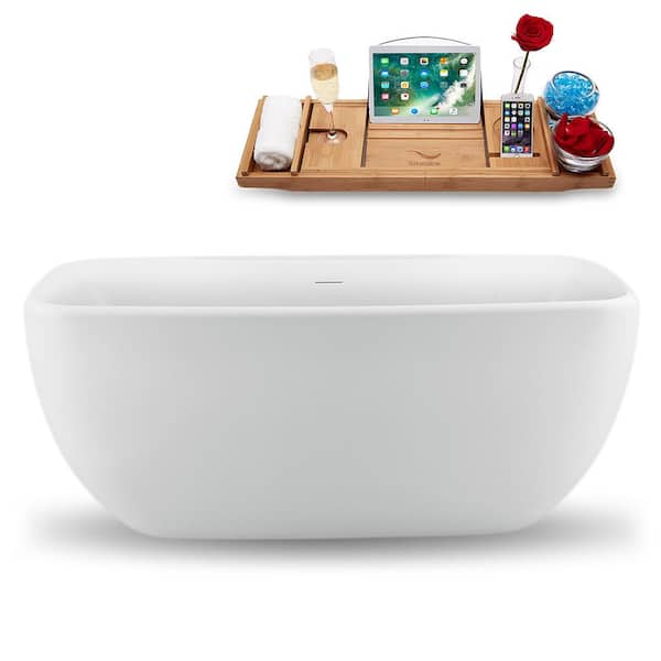 59 in. Acrylic Flatbottom Non-Whirlpool Bathtub in Glossy White with Glossy White Drain
