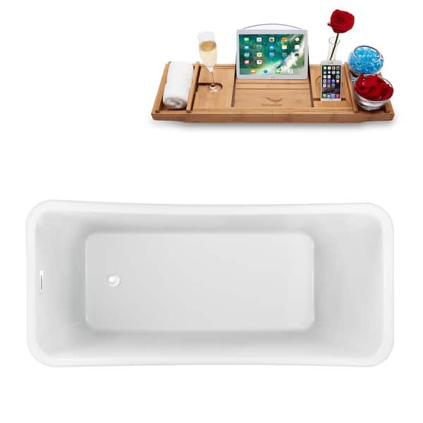 59 in. Acrylic Flatbottom Non-Whirlpool Bathtub in Glossy White with Glossy White Drain and Overflow Cover