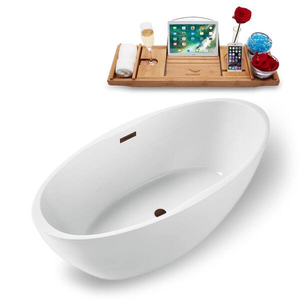 59 in. Acrylic Flatbottom Non-Whirlpool Bathtub in Glossy White with Matte Oil Rubbed Bronze Drain and Overflow Cover