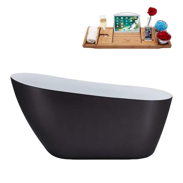 59 in. Acrylic Flatbottom Non-Whirlpool Bathtub in Matte Gray With Matte Black Drain