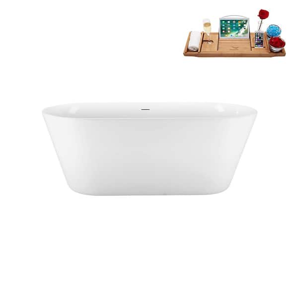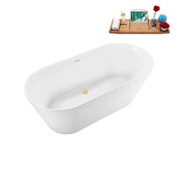 59 in. x 28 in. Acrylic Freestanding Soaking Bathtub in Glossy White with Polished Brass Drain