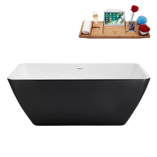 59 in. x 30 in. Acrylic Freestanding Soaking Bathtub in Glossy Black With Brushed Gold Drain