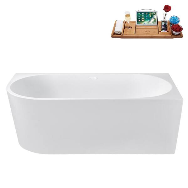59 in. x 30 in. Acrylic Freestanding Soaking Bathtub in Glossy White with Brushed Gold Drain, Bamboo Tray