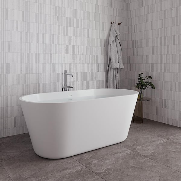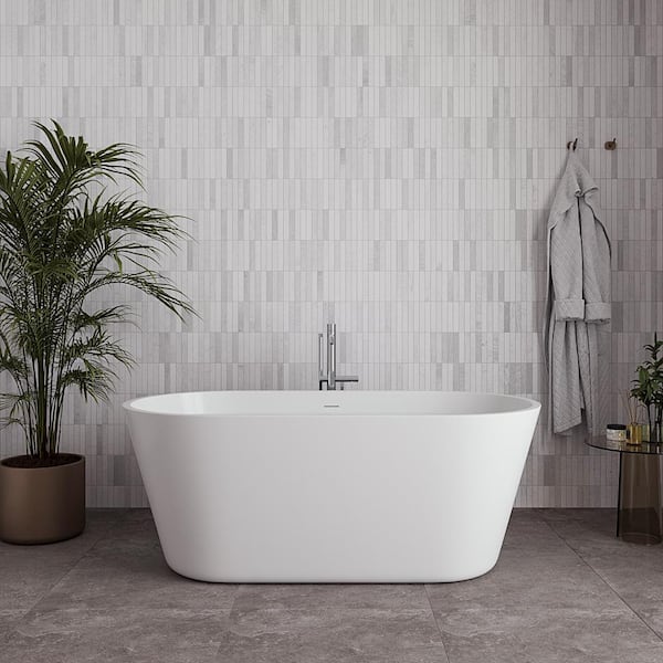 59 in. x 30 in. Acrylic Freestanding Soaking Bathtub in Glossy White with Glossy White Drain