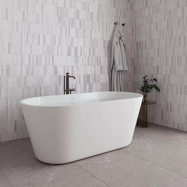 59 in. x 30 in. Acrylic Freestanding Soaking Bathtub in Glossy White with Matte Oil Rubbed Bronze Drain