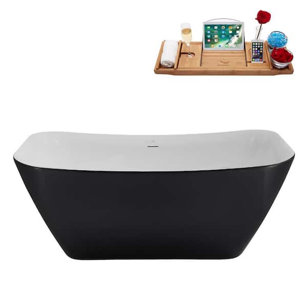59 in. x 31 in. Acrylic Freestanding Soaking Bathtub in Glossy Black with Polished Gold Drain