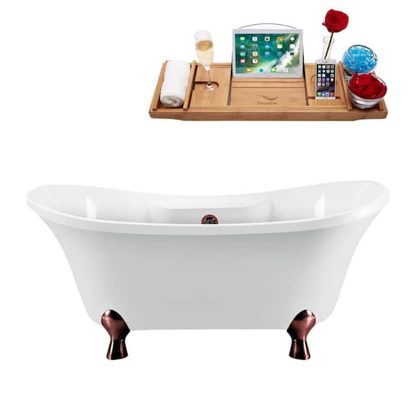 60 in. Acrylic Clawfoot Non-Whirlpool Bathtub in Glossy White,Matte Oil Rubbed Bronze Clawfeet And Drain
