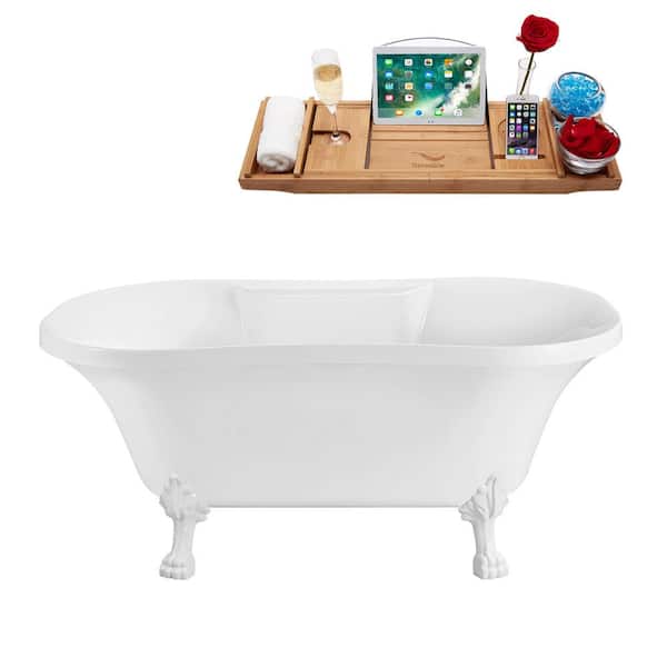 60 in. Acrylic Clawfoot Non-Whirlpool Bathtub in Glossy White with Matte Black Drain And Glossy White Clawfeet