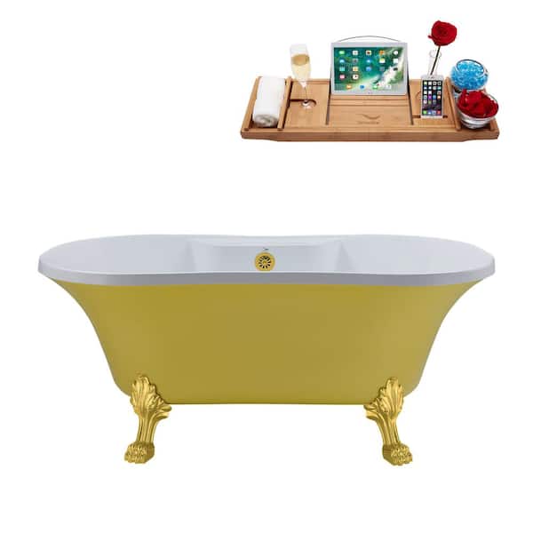 60 in. Acrylic Clawfoot Non-Whirlpool Bathtub in Matte Yellow With Polished Gold Clawfeet And Polished Gold Drain