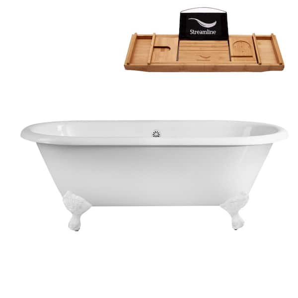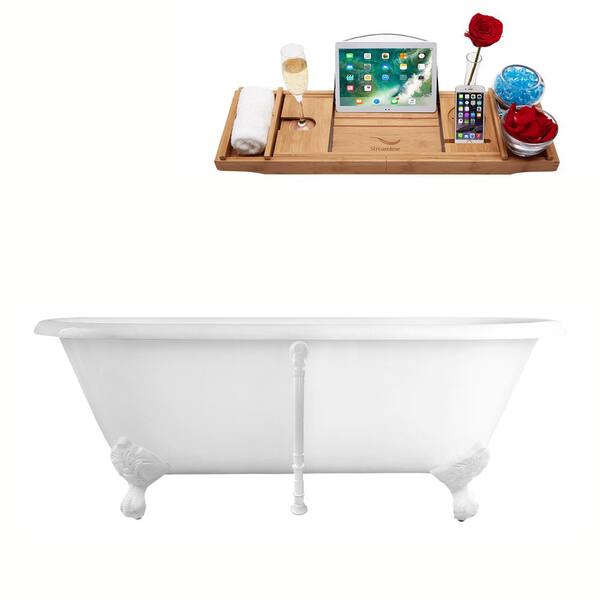 60 in. Cast Iron Clawfoot Non-Whirlpool Bathtub in Glossy White with Glossy White Drain and Glossy White Clawfeet