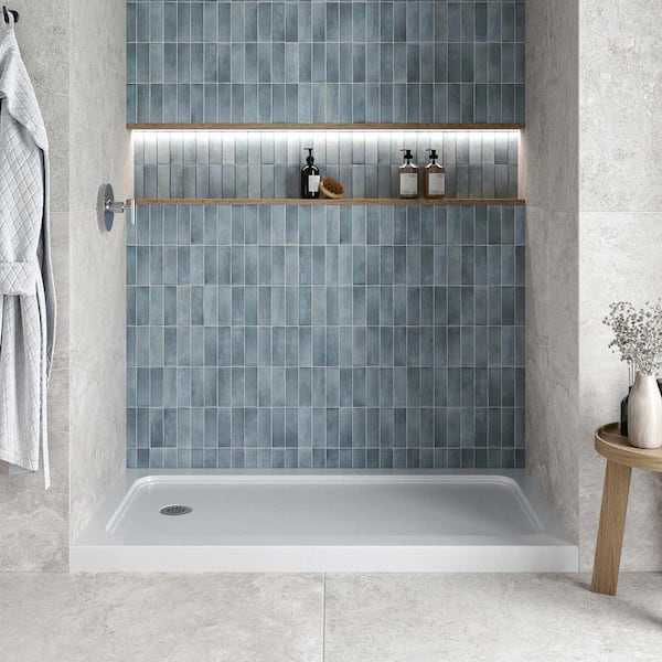 60 in. L x 32 in. W Alcove Acrylic Shower Pan Base in Glossy White with Right Drain, Drain Included