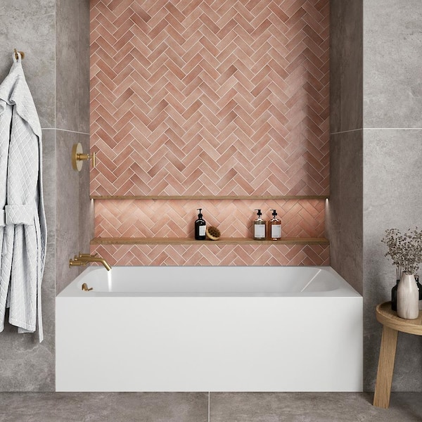 60 in. x 30 in. Soaking Acrylic Alcove Bathtub with Left Drain in Glossy White, External Drain in Brushed Gold