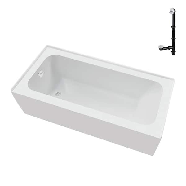 60 in. x 30 in. Soaking Acrylic Alcove Bathtub with Right Drain in Glossy White, External Drain in Glossy White