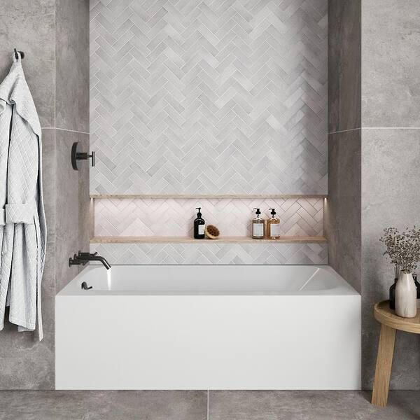 60 in. x 30 in. Soaking Acrylic Alcove Bathtub with Left Drain in Glossy White,External Drain in Matte Oil Rubbed Bronze