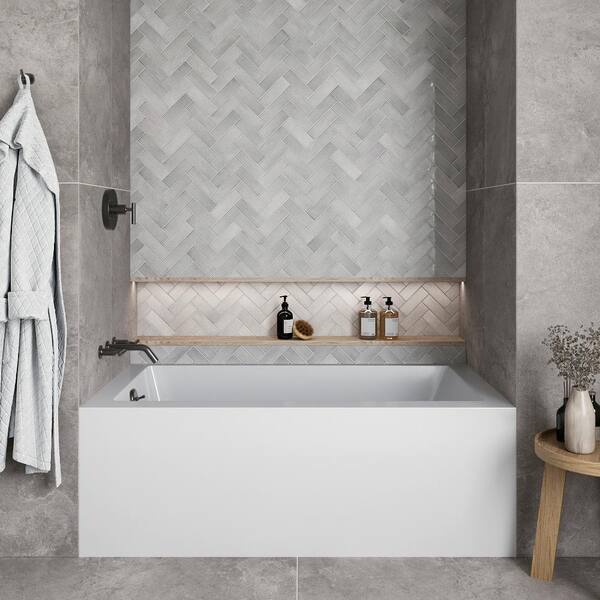 60 in. x 32 in. Soaking Acrylic Alcove Bathtub with Left Drain in Glossy White External Drain in Matte Oil Rubbed Bronze
