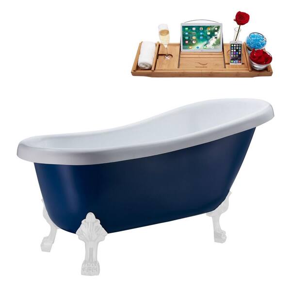 61 in. Acrylic Clawfoot Non-Whirlpool Bathtub in Matte Dark Blue With Glossy White Clawfeet And Brushed Gold Drain