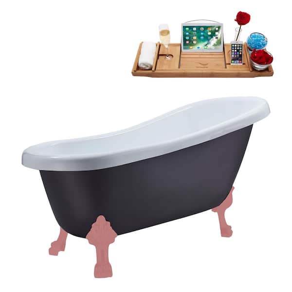 61 in. x 27.6 in. Acrylic Clawfoot Soaking Bathtub in Matte Grey with Matte Pink Clawfeet and Matte Pink Drain