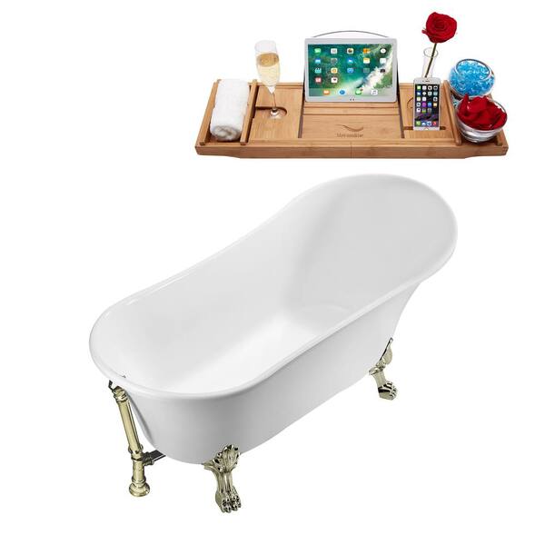 63 in. Acrylic Clawfoot Non-Whirlpool Bathtub in Glossy White With Brushed Nickel Clawfeet And Brushed Nickel Drain