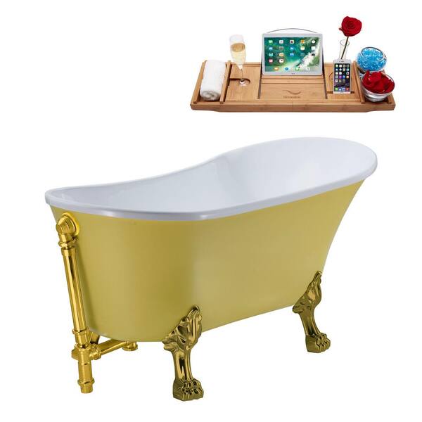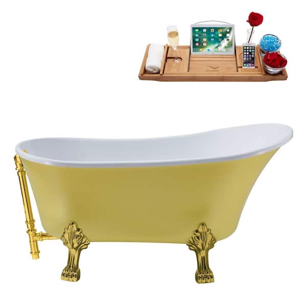 63 in. Acrylic Clawfoot Non-Whirlpool Bathtub in Matte Yellow With Brushed Gold Clawfeet And Polished Gold Drain