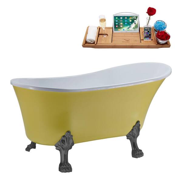 63 in. Acrylic Clawfoot Non-Whirlpool Bathtub in Matte Yellow With Brushed Gun Metal Clawfeet And Brushed Gold Drain