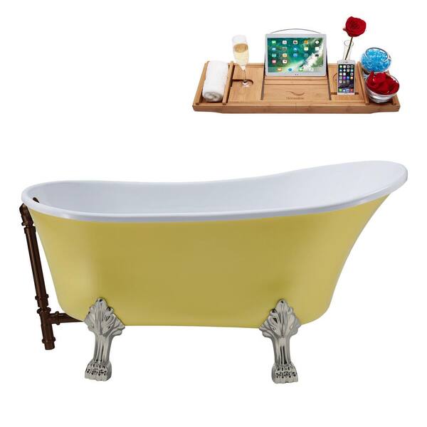63 in. Acrylic Clawfoot Non-Whirlpool Bathtub in Matte Yellow With Brushed Nickel Clawfeet,Matte Oil Rubbed Bronze Drain